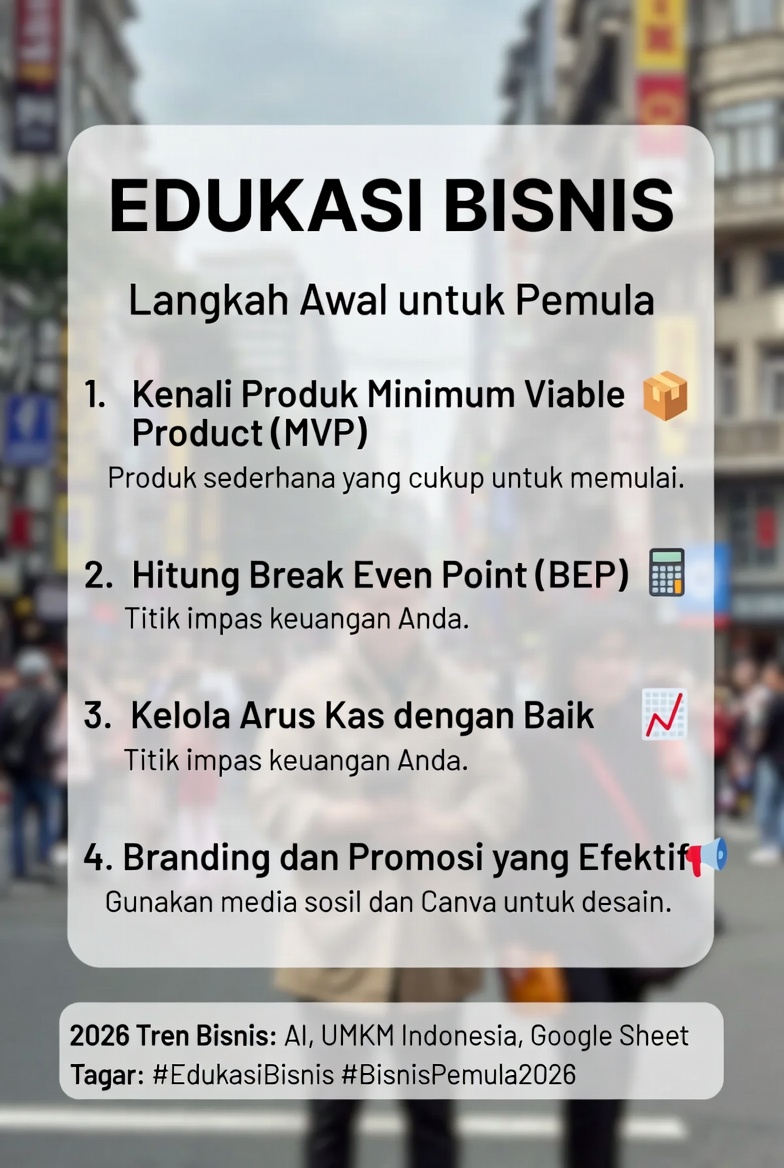 Penutup Bisnis bukan soal berapa banyak uang yang kamu punya di awal, melainkan seberapa cepat kamu belajar dari data dan feedback pasar. Di era 2026, informasi dan tools gratis sangat banyak (YouTube, grup komunitas, Canva, Google Sheet, AI tools). Yang membedakan sukses atau gagal adalah kedisiplinan belajar dan eksekusi.